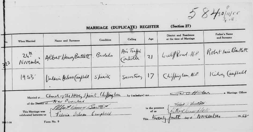 In November 1953, he married Valeria Deloris Campbell.