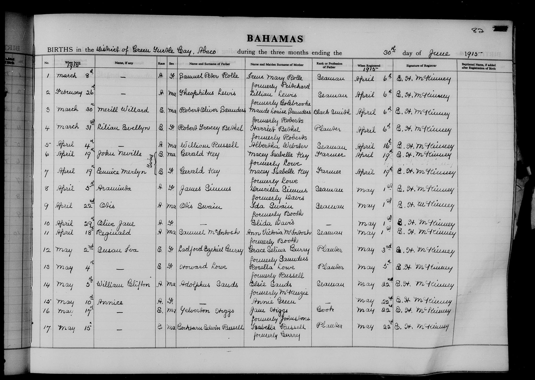 Lillian Evellyn ‘Eve’ Bethell was born on March 31, 1915, in Green Turtle Cay, Abaco to Robert Tracy Bethell (1868-1922) and Harriet Fletcher Roberts (1895-1947?). Robert Tracy Bethell died at sea 16 April 1922 at 53 years of age.