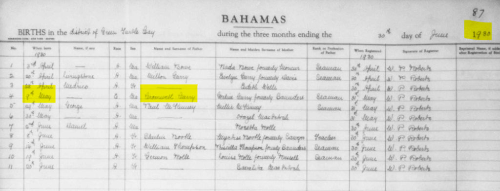 Curtis Cromwell Curry Sr was born on May 9, 1930, in Green Turtle Cay, Abaco to Theodore Cromwell Curry (1901-1974) and Jerlene Emily Saunders (1901-1976).