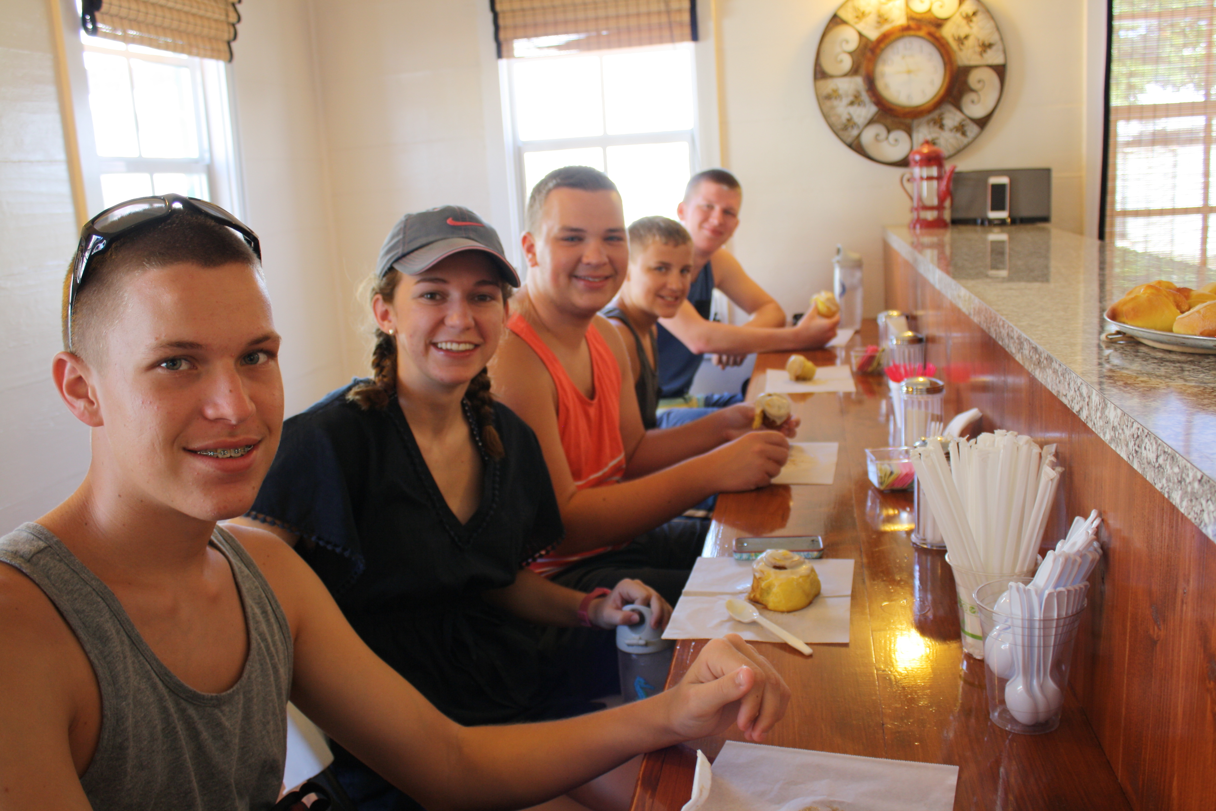Our first stop – a quick breakfast snack – fuel to power our walk around town. Recommended by Little House by the Ferry, Mo-Mo’s Suga’ Shack seemed like the perfect spot. No doubt, an old cottage remodeled and converted into a charming store front. While the seating capacity was nearly maxed out with our family of eight, the display of homemade bread and fresh pastries quickly grabbed our attention…cinnamon rolls, cheese and guava pastries. We were off to a good start.