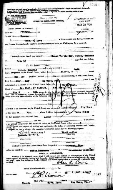Charles Aldelbert Lowe was born on October 17, 1890, in Green Turtle Cay, Abaco, Bahamas to Jabez Austin Lowe (1856-1893) and Adriana Ellen ‘Ada’ Curry (1855-1938).