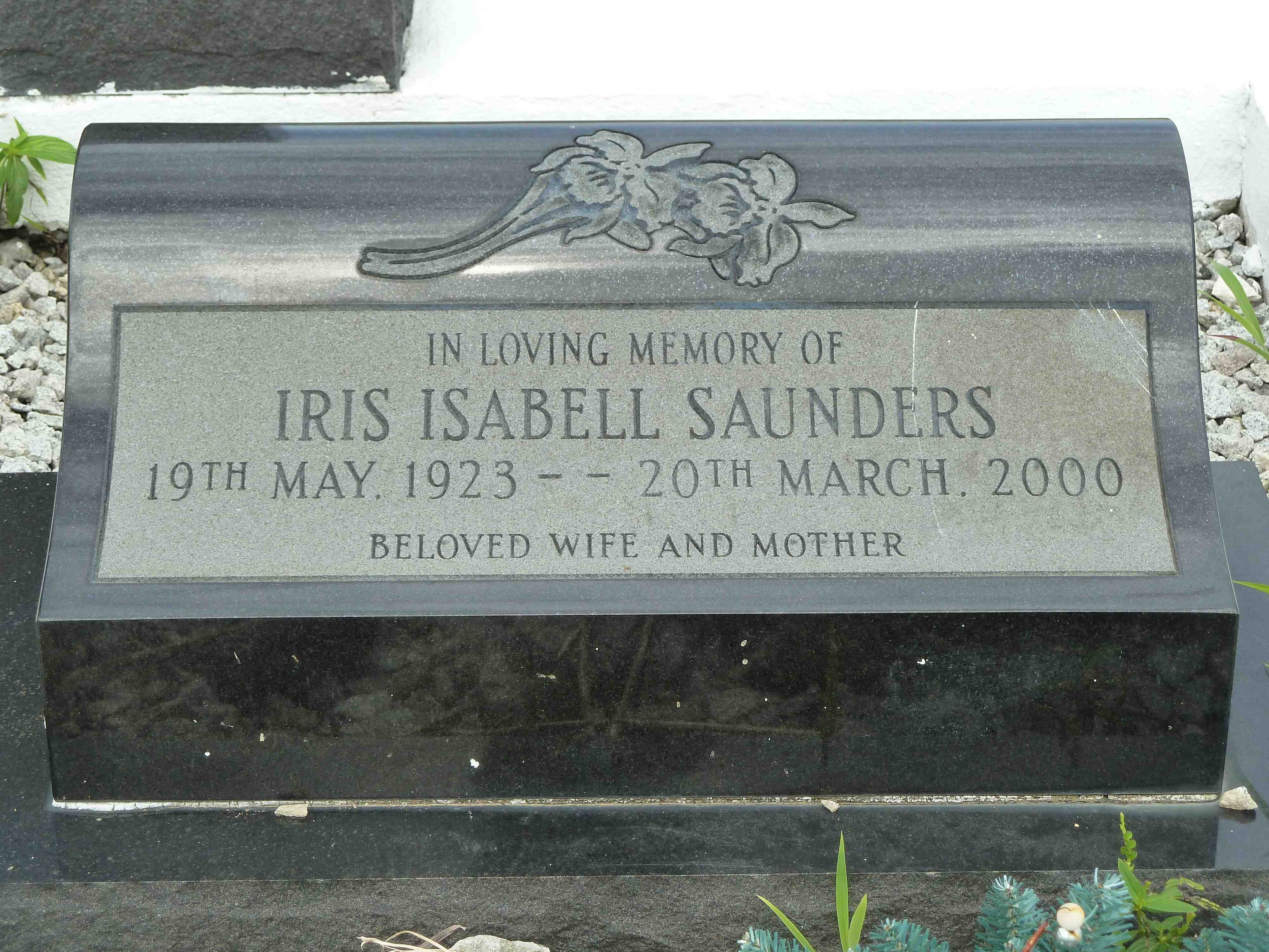 Iris Isabell Saunders née Lowe passed away on March 20, 2000 (age 76) in Nassau, New Providence and is buried in the Ebenezer Church cemetery.