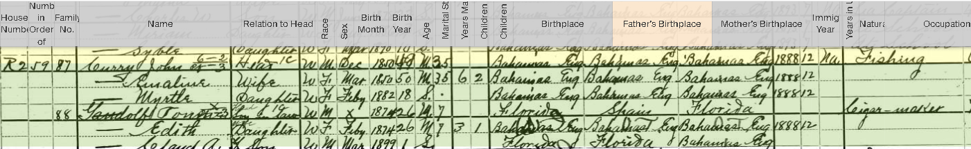 The family moved to Key West, Florida around 1888 as indicated in the 1900 US Federal Census.