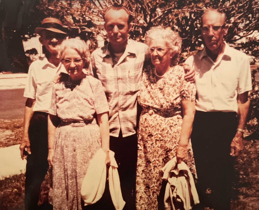 L-R: Berlin Bernard Saunders Sr with Myrna Rider, Betty Saunders w/Lorraine Saunders, Jos Sweek, Broward Saunders holding daughter Bobbie, Sadell Ida ‘Sadie’ (Saunders) Richmond, Edna Saunders Crider, Helen Sweek Saunders, Jennie Breen Saunders, Jennie Sweek.